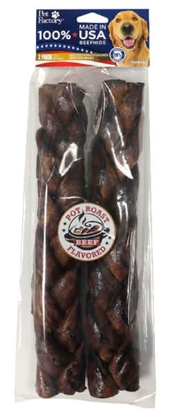 Pet Factory Premium Flavored Beefhide Braid, Beef Pot Roast Flavored