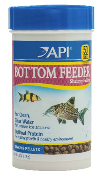 Api Bottom Feeder Shrimp Pellets Fish Food is specially formulated for bottom-feeding fish, including varieties such as Plecostomus. These sinking pellets help maintain cleaner and clearer water by producing less ammonia and reducing waste and ammonia levels. Containing shrimp, the food offers optimal protein for maximum digestion and constitutes a complete and balanced diet for these types of fish. Regular use of this product supports fish health by minimizing gill damage, stress, illness, and death associated with high ammonia levels. It is advised to feed the fish only as much as they can consume within 30 minutes, doing so twice daily.