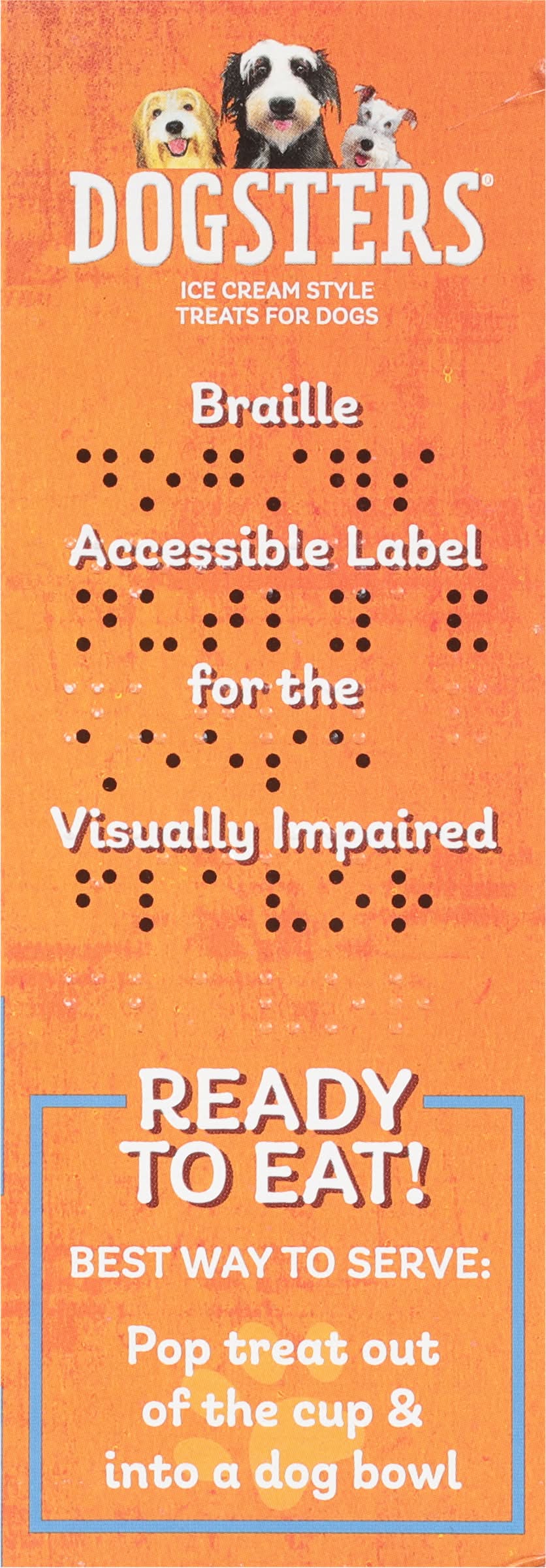 Ice cream style treats for dogs. No artificial flavors. Low fat. Braille accessible label. Veterinarian recommended, dog approved. Who's a good dog? You are, you're a good doggy! Make snack time a pawty and treat your furry friend in the doggone coolest way! Whether you want to bowwow your pooch on their 'gotcha day', they learned a new trick that deserves a round of a-paws or they had a ruff day and need the ultimutt pick-me-up, we are here for it with a wag-worthy cup of Wuv On Ice! Ready to eat! Braille accessible label for the visually impaired. Proudly made in the USA. Pack size: 4