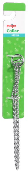 Crafted for command and obedience training, the Meijer Chain Dog Collar is constructed with nickel/chrome-plated solid steel welded links and rings, ensuring durability. Designed specifically for medium-sized dogs, the collar offers an adjustable size feature to accommodate a comfortable fit.