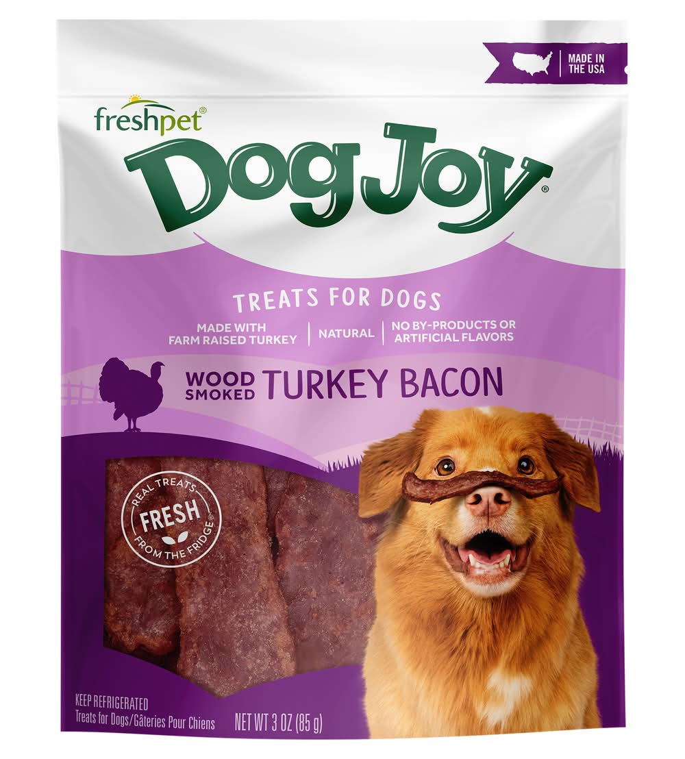100% all natural. Fresh from the fridge. Made with real, wood-smoked turkey. Dog Joy Treats - thanks for all the joy he brings into your life. When you see your dog uncontrollably wagging his tail or innocently rolling over for a belly rub, you can't help but smile. This is Dog Joy: the infectious joy that dogs bring into our lives. Dogs' shameless enthusiasm and quirky character makes them irresistible sidekicks and priceless friends. Enjoy time with your dog and treat him to Dog Joy, thanks for all the joy he brings into your life. Luv: You love your dog and he loves you. Show him how much with Dog Joy Treats. Run: Once he gets a sniff of the delicious, wood-smoked aroma, he'll come running for these tasty bacon treats. Yup: As in yessiree! Dog Joy Turkey Bacon is made with real turkey. No by-products or fillers in here. 100% all natural. Fully cooked. Ready to treat. FreshPet Foundation: Dedicated to helping pets live long and healthy lives. Learn ways to help maintain the health of your pet at