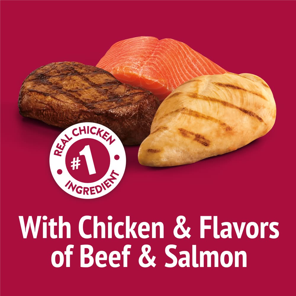 Ingredients: Chicken, Chicken Meal, Brewers Rice, Chicken By-Product Meal, Beef Tallow Preserved With Mixed-Tocopherols, Pea Starch, Barley, Corn Protein Meal, Liver Flavor, Brewers Dried Yeast, Natural And Artificial Flavors, Cassava Root Flour, Phosphoric Acid, Calcium Carbonate, Potassium Chloride, Salmon Meal, Choline Chloride, Salt, Taurine, L-Ascorbyl-2-Polyphosphate (Vitamin C), Vitamins [Vitamin E Supplement, Niacin (Vitamin B-3), Vitamin A Supplement, Calcium Pantothenate (Vitamin B-5), Thiamine Mononitrate (Vitamin B-1), Riboflavin Supplement (Vitamin B-2), Vitamin B-12 Supplement, Pyridoxine Hydrochloride (Vitamin B-6), Folic Acid (Vitamin B-9), Vitamin D-3 Supplement, Biotin (Vitamin B-7), Menadione Sodium Bisulfite Complex (Vitamin K)], Minerals [Zinc Sulfate, Ferrous Sulfate, Manganese Sulfate, Copper Sulfate, Calcium Iodate, Sodium Selenite], Yellow 5, Citric Acid, Yellow 6, Red 40, Blue 2, Bha (A Preservative), Bht (A Preservative), . I619123