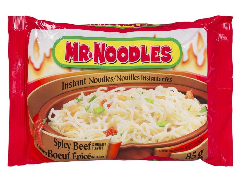 Mr. Noodles Instant Noodles in Spicy Beef flavor is an 85 g packet that provides a quick and savory meal option. Manufactured in a facility that also processes egg, milk, fish, shellfish, soy, nuts, sesame seeds, and sulphites, consumers with allergies should be aware of the potential for cross-contamination. Flavor: Spicy beef