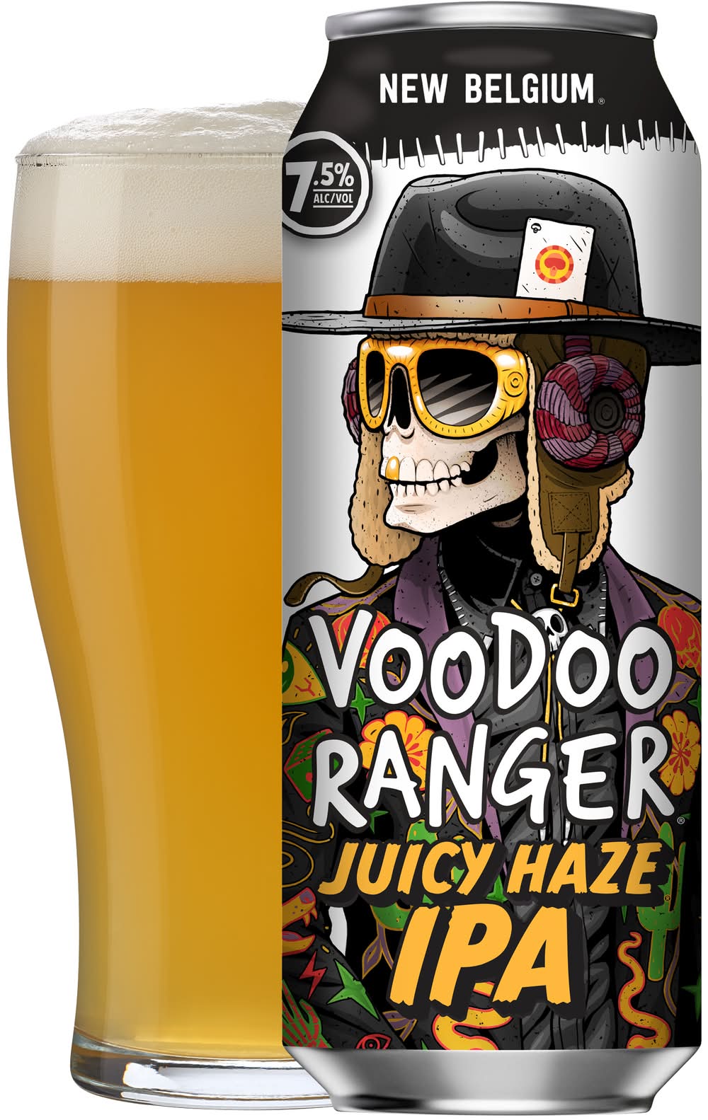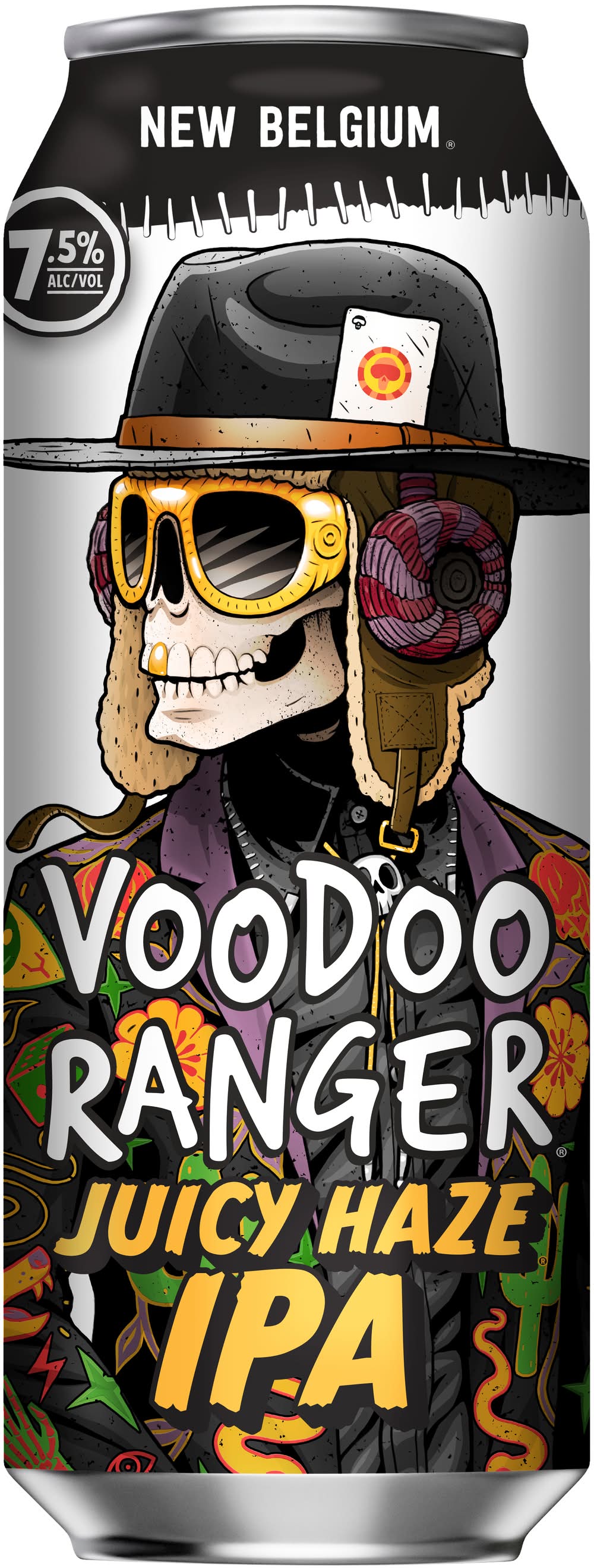 Voodoo Ranger Juicy Haze IPA is a craft beer packed with bright tropical aromas and brilliant citrusy flavors. It's a bold, juicy IPA with just the right amount of haze. It's the kind of beer that'll punch your tastebuds, but then hit you with a pleasantly smooth finish. Juicy Haze is a satisfying rollercoaster of fruit-forward flavor. • Brand: Voodoo ranger • Category: New england / hazy ipa • Flavor: Juicy haze • Alcohol by volume: 7.5% • Packaging: Reusable