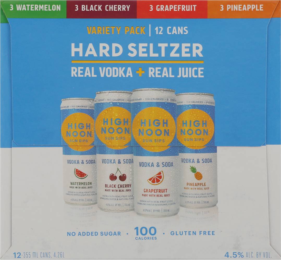 High Noon Sun Sips Hard Seltzer Variety pack, Watermelon-Black Cherry-Grapefruit-Pineapple (12 x 12.52 oz)