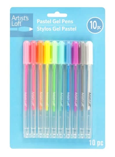 Buy the Pastel Gel Pen Set by Artist's Loft at Michaels. Use these gel pens by Artist's Loft to doodle, take notes and journal with to add fun colors to your notebook pages. Includes assorted pastel colors. 1 mm medium point. 10 gel pens. Quick dry. Conforms to ASTM D-4236 Color: Multicolor
