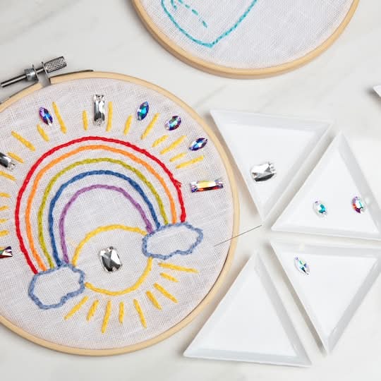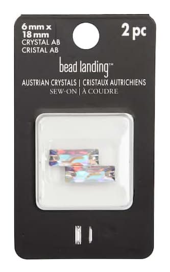 Find the 18mm Baguette Sew-On Austrian Crystals by Bead Landing, 2ct. at Michaels. Designed with a flat back and two holes for sewing into fabric and other soft materials, mix with various shapes, colors and sizes to make stunning accessory and decor pieces. Available in multiple colors. 6mm x 18mm crystal size. 2 crystals. 12 facets on each crystal. Baguette shape. Glass. 18mm Baguette Sew-On Austrian Crystals by Bead Landing, 2ct. Color: Crystal ab