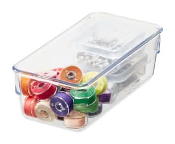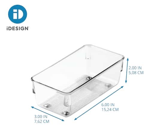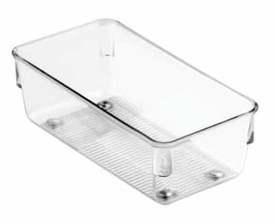Make the most of your storage space with the i Design Linus Drawer Organizer. This low-profile tray is designed to fit in most standard-sized drawers and is ideal for storing smaller items in kitchen, pantry, bedroom, closet, bathroom, office, or anywhere around the home that you need additional organization. The transparent plastic sides and open top ensure contents are always visible and accessible, while the non-skid and non-slip feet keep the organizer in place and prevent it from sliding when opening and closing the drawer. It can also be paired with additional Linus drawer organizers (sold separately) to maximize storage space. Made with durable BPA-free clear plastic, this drawer insert is made to last and is easy to clean with mild soap and water. Measuring 3.25" x 6.5" x 2.25", it creates instant organization in compact spaces. With i Design by Inter Design, you can Live Simply every day. Color: Clear
