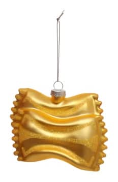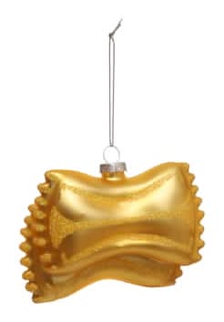 Find the 3.5" Bowtie Pasta Glass Ornament by Ashland at Michaels. Give your favorite comfort food a nod on your holiday tree with this charming glass ornament shaped like a piece of bowtie pasta. Accented with glitter and a satiny finish, this cute piece is sure to bring cheer to your home this Christmas. Yellow gold. 3.5" x 1.5" x 3" (8.9cm x 3.8cm x 7.6cm). Glass and iron. Ready to hang. Recommended for indoor use only Color: Null