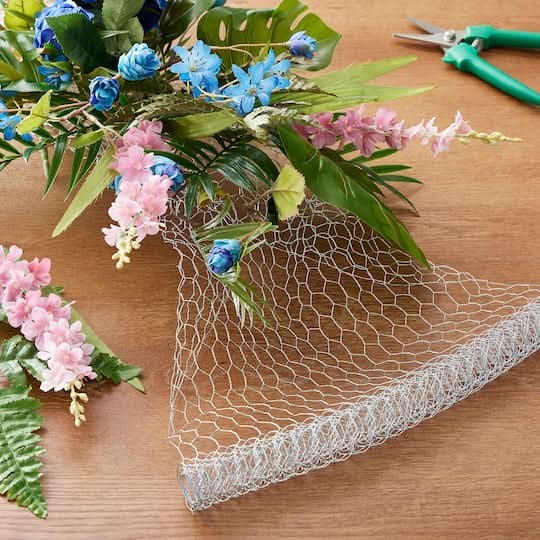 This chicken wire by Ashland is perfect to secure in a wooden window, door or cupboard frame. Silver. 12" x 50". 1 roll. Iron • Color: Silver • Size: 12" x 50"