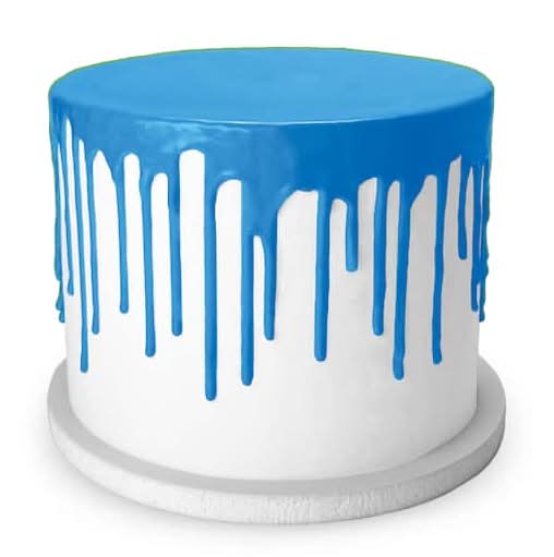 Transform your cake for any occasion using this delectable cake drip. Vegetarian and nut free. • Flavor: White chocolate • Color: Blue