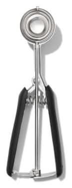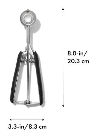 Oxo Cookie Scoop Small is crafted for effortless scooping and uniform shaping of cookie dough. It includes a soft grip designed to absorb pressure, enhancing comfort during use. The mechanism ensures smooth release of dough. For convenience, it is dishwasher safe.