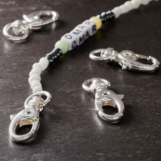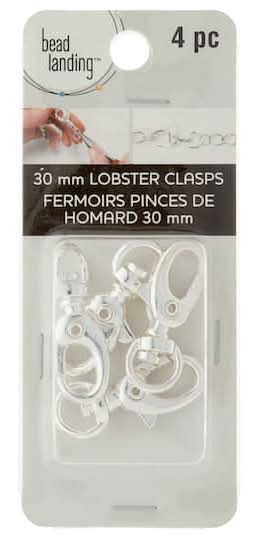 These large lobster claws are ideal for making key rings, lanyards and ID holders. The clasp swivels to prevent tangling. Silver tone. 30 mm. 4 lobster claws. Nickel free. Clasps swivel. Bead Landing Swivel Lobster Claw Clasps, 30mm • Color: Silver • Size: 30 mm