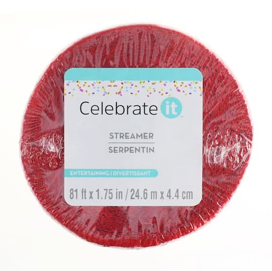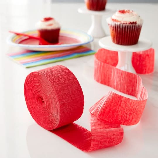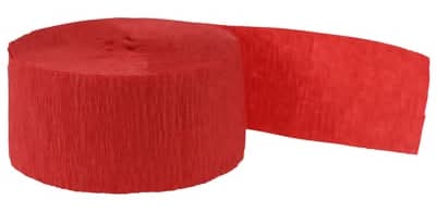 Purchase this 81ft. Crepe Streamer by Celebrate It at Michaels. Combine this crepe paper streamer with other colors to make wonderful party decorations. Available in assorted colors . 81ft. x 1.75" (24.6m x 4.4cm) • Color: Red • Size: 24.6m x 4.4cm