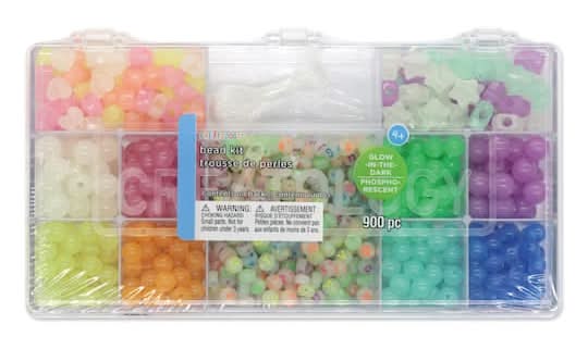 Find the Glow in the Dark Alphabet Bead Kit by Creatology at Michaels. Your child will have a blast making bright, playful beaded accessories with this glow in the dark alphabet bead kit from Creatology. Perfect for afterschool or a rainy day, this kit includes most everything needed for your little one to craft personalized bracelets, necklaces, keychains and more! Includes multiple bead styles. 900 pieces. For ages 4 and up. 400 alphabet beads (0.13" x 0.25"/3.5mm x 6.5mm each)310 round beads (0.31"/8 mm each). 310 round beads (0.31"/8 mm each)85 heart beads (0.31"/8 mm each). 85 heart beads (0.31"/8 mm each)55 star beads (0.39"/10 mm each) Color: Assorted