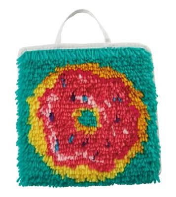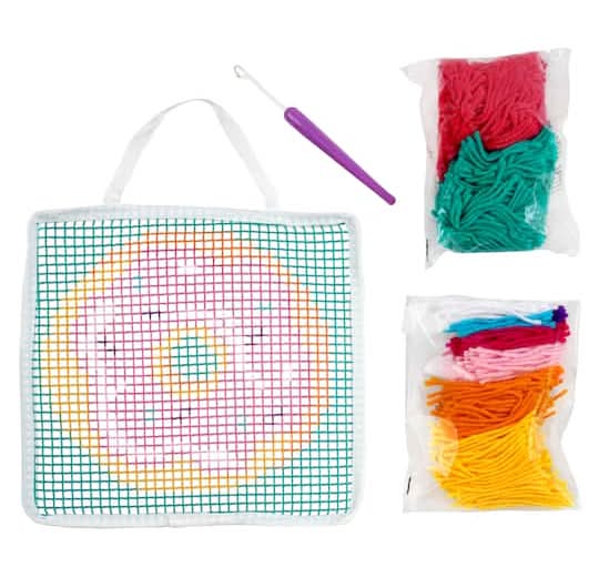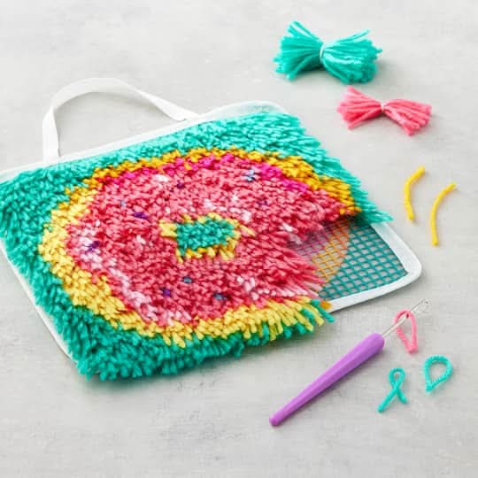 Buy the Donut Latch Hook Kit by Creatology at Michaels. This donut latch hook kit is perfect for engaging your creativity. The pre-printed mesh makes for easy color matching and is great for beginners. Display the finished project in your room for a personal touch. Multicolor. 9.5" x 9.5" x 2" (24.13cm x 24.13cm x 5.08cm) package size. For ages 6 and up . 1 crochet hook1 mesh. 1 mesh1 plastic needle threader. 1 plastic needle threader1156 yarns each 2.3" (6 cm)
