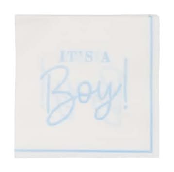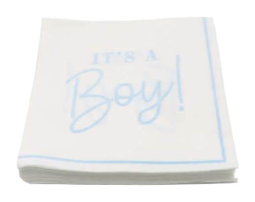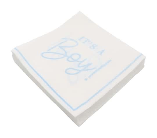 Find these It's a Boy Beverage Napkins, 20ct. by Celebrate It at Michaels. Blue print on white. 4.8" x 4.8" (12.1cm x 12.1cm). 20 napkins. 2 ply tissue paper
