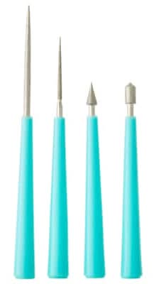 These diamond tipped, plastic handle reamers are used to enlarge bead holes or smooth out rough edges. Turquoise in color. 4 different tip sizes. package. Bead Landing Bead Reamer Set Color: Blue turquoise