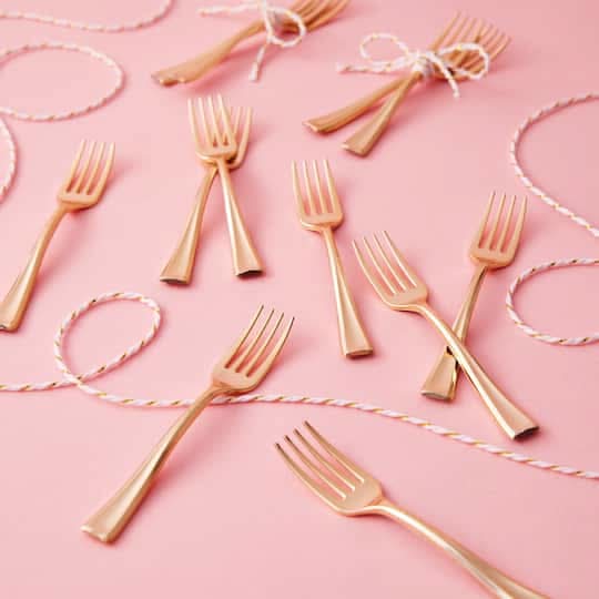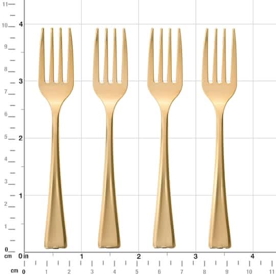 Get the Gold Mini Forks by Celebrate It, 24ct. at Michaels. Offer these mini forks to your guests when you serve small appetizers, fruit, mini pies or pastries Gold colored. 24 mini forks. Hand wash only. Do not microwave. Plastic. Gold Mini Forks by Celebrate It, 24ct. Color: Gold