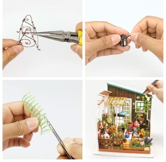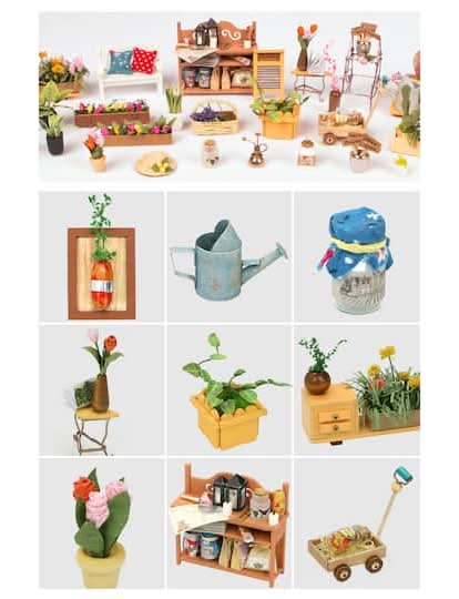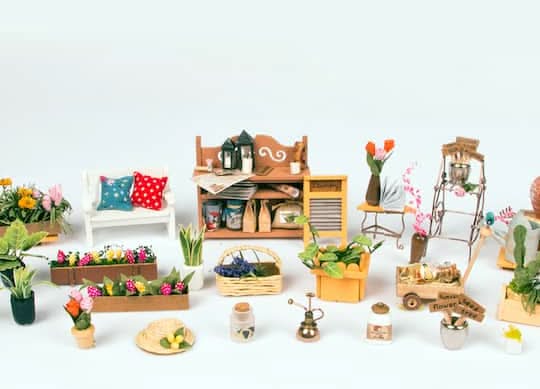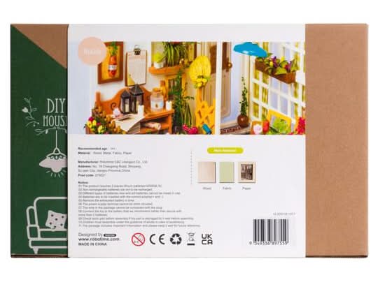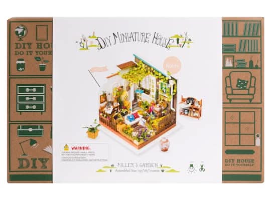 Find the Rolife DIY Miniature House Miller's Garden. Welcome to Miller's Garden. Breathe the fresh air from this beautiful green garden yard DIY miniature house and start a day full of energy. 8.27" x 7.2" x 7.68" (21cm x 18.28cm x 19.50cm) assembled size . Kit Design: DG108 . Scissors needed . LED lit . Requires 2 lithium batteries (CR2032, 3V) . Conforms to ASTM D-4236 .