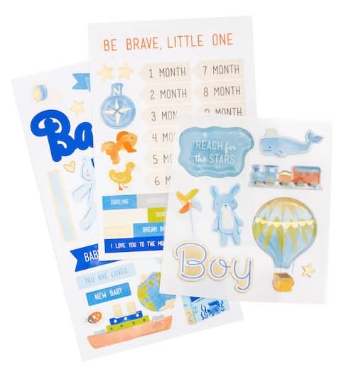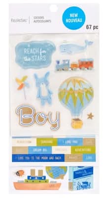 Purchase the Boy Adventure Baby Stickers by Recollections at Michaels. Embellish your DIY cards and scrapbook pages with these boy adventure baby stickers. These baby themed stickers can be used to accent photographs, memories and more.. 3.875" x 6.875" (9.8cm x 17.4cm) largest sheet size . 3 sheets, 67 stickers . Dimensional PVC, flat PVC, chipboard and foil