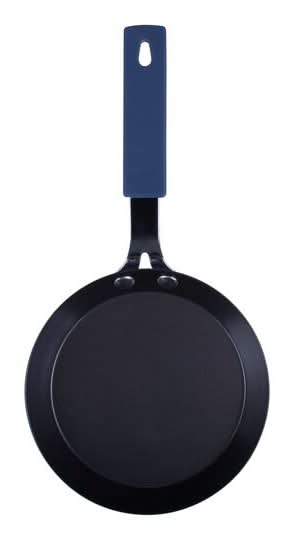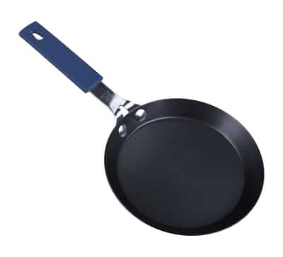 This is perfect for sauteing small quantities of veggies, frying eggs, and other culinary delights.back pan surface.. Food safe. Carbon steel, thermoplastic rubber handle. Hand wash Dry thoroughly before and after each use • Color: Blue-black • Size: 5.5