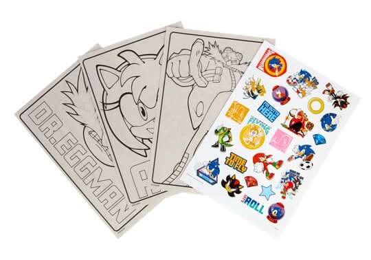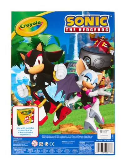 The Hedgehog sticker sheet, this book features beloved characters like Sonic, Tails, Shadow, and Knuckles. Includes pages of coloring activities and a Sonic Pair with Supertips or Crayons for a great gift .Safe and nontoxic.
