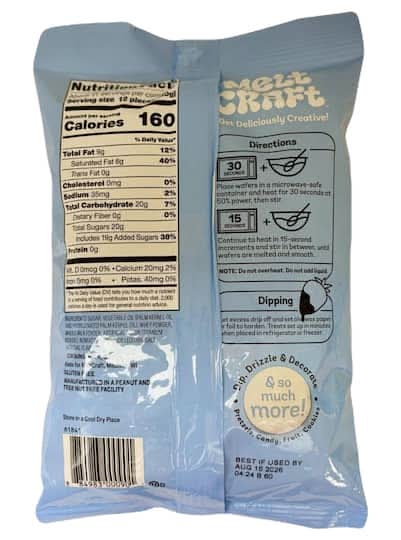 Easy to prepare in the microwave, these tasty candy melts are perfect to drip, drizzle and decorate pretzels, candy, fruit, cookies and so much more. • Flavor: Vanilla • Color: Bright white