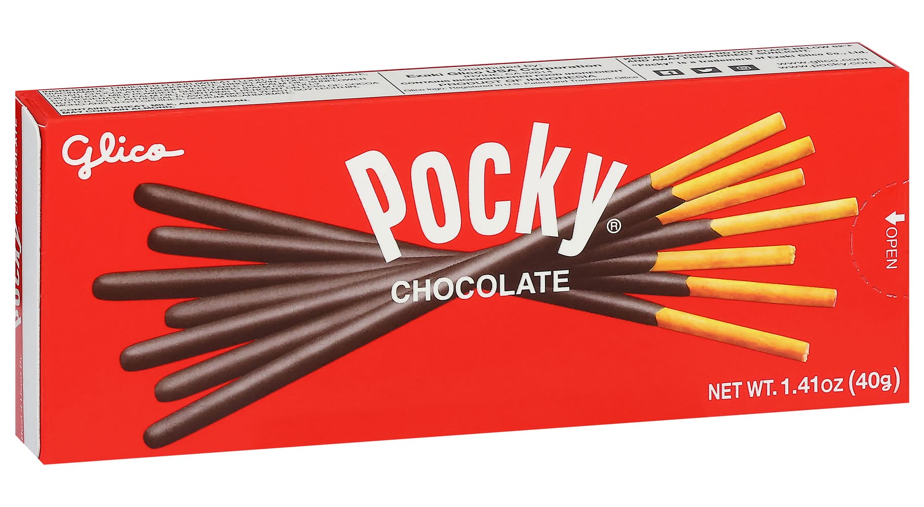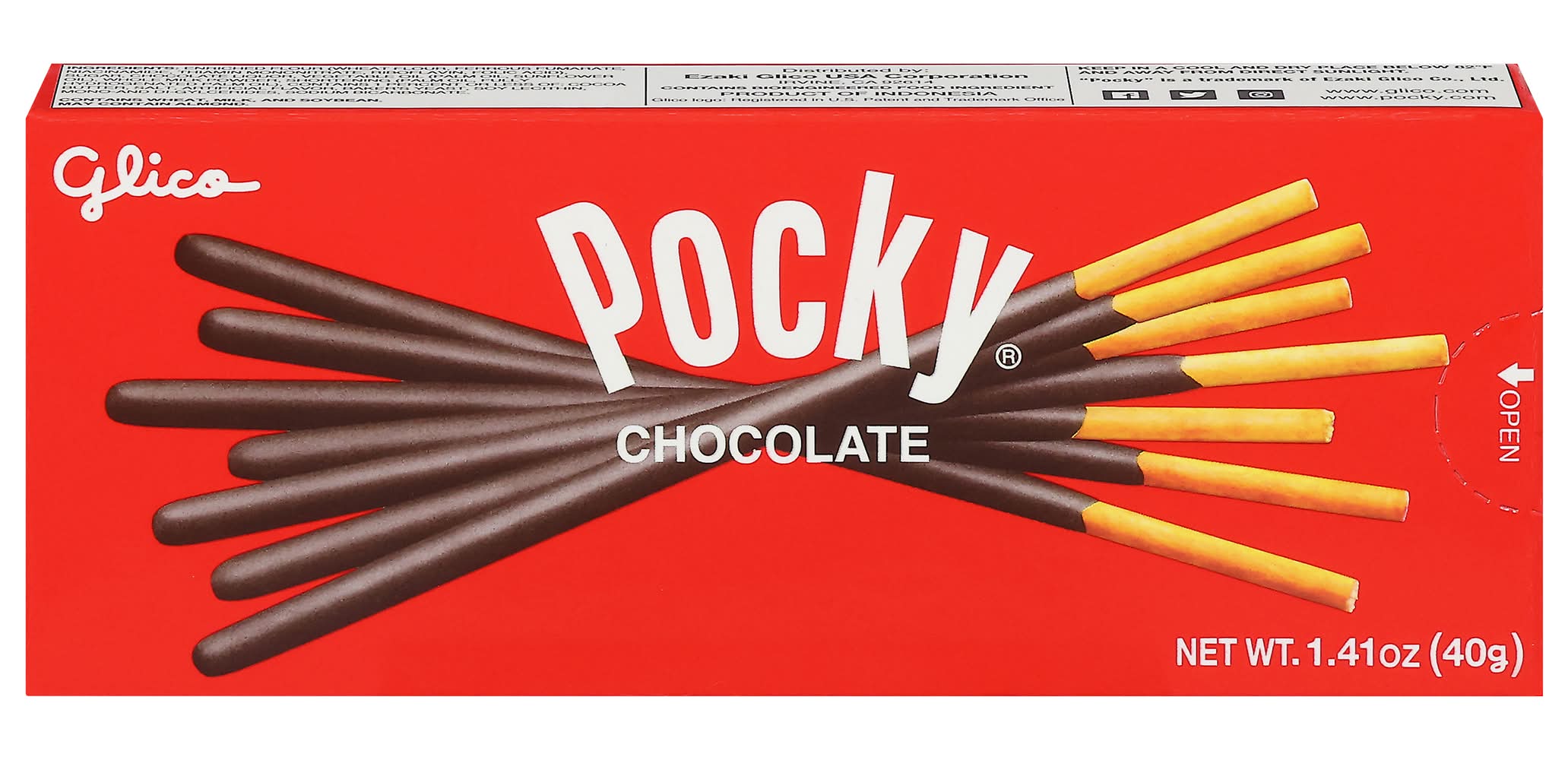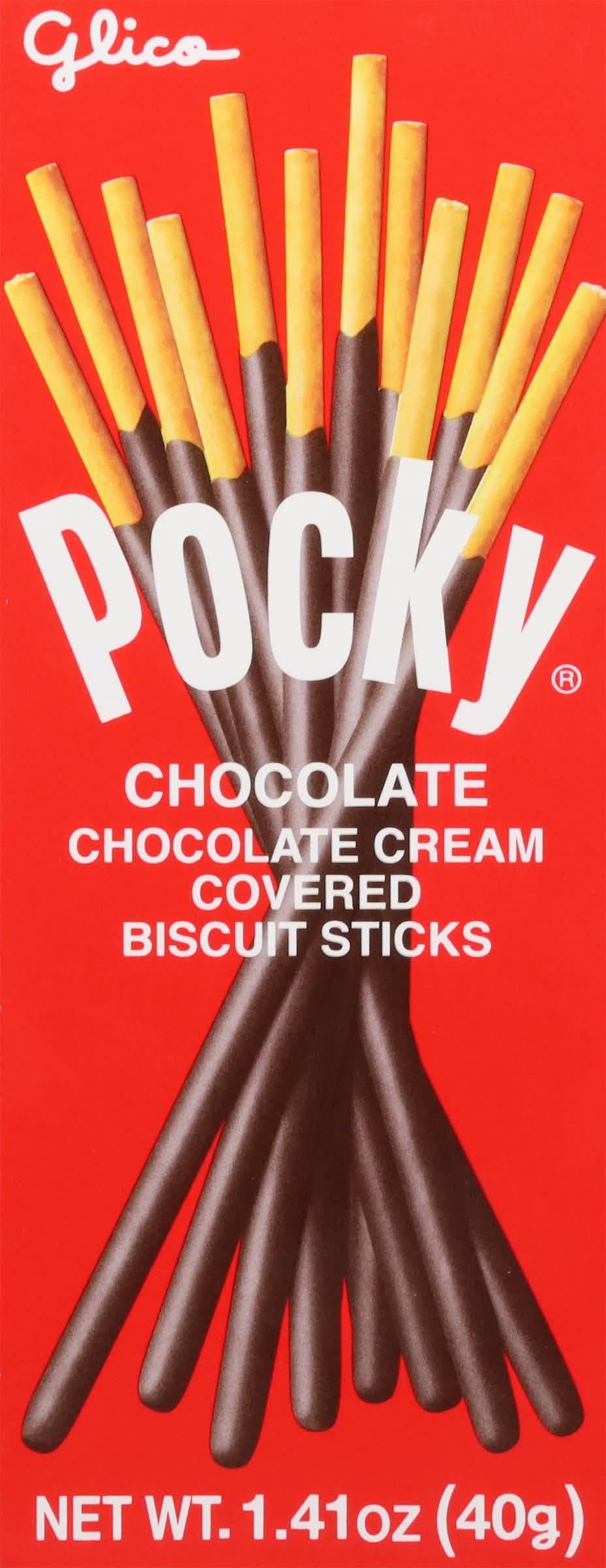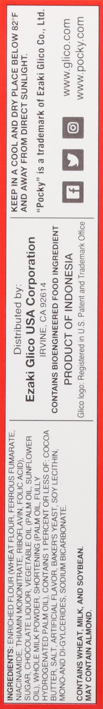Purchase the Glico Pocky Chocolate Cream Covered Biscuit Sticks at Michaels. The original Pocky flavor that started it all! Delicious alone with coffee, tea, milk, Pocky Chocolate is the perfect every day, all occasion chocolate snack. 1.41 oz.. Contains wheat, milk and soybeans • Flavor: Chocolate • Pack size: 10 • Ezaki Glico USA Corporation, Irvine, Ca, 92614