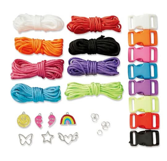 Find the My First Paracord Kit by Creatology at Michaels. This paracord kit is the perfect crafting set for your little ones. 30 pieces total. For ages 6 and up. 8 cords (118"/299 cm) each8 plastic buckle clasps. 8 plastic buckle clasps7 charms. 7 charms7 ring clasps • Color: Multicolor • Size: 118 in