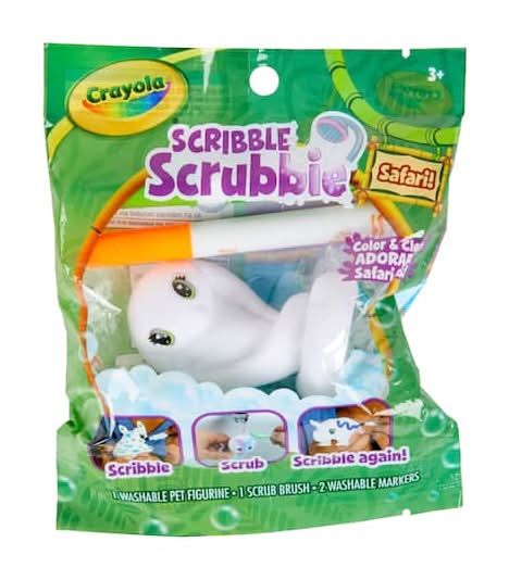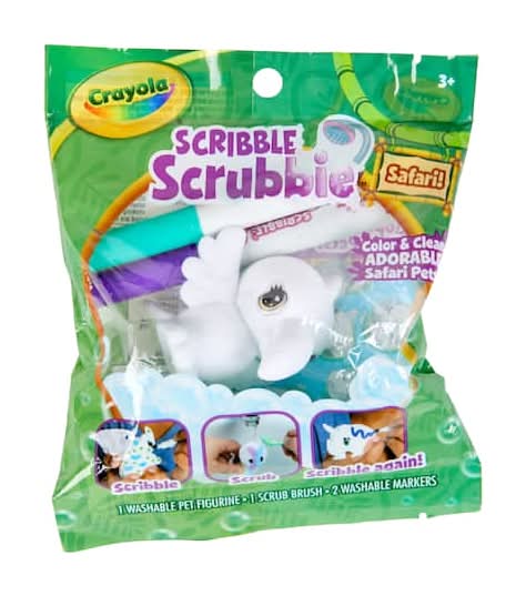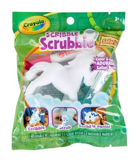 Find the Assorted Crayola Scribble Scrubbie Safari at Michaels. Kids will enjoy doodling on this cute Scribble Scrubbie safari pet. Available in assorted styles . 1.5" x 4.5" x 5.75" (3.81cm x 11.43cm x 14.60cm) package size . Includes 1 figurine (style will vary) . Nontoxic . Conforms to ASTM D 4236 . For ages 3 and up . Assorted Crayola Scribble Scrubbie Safari Color: Assorted