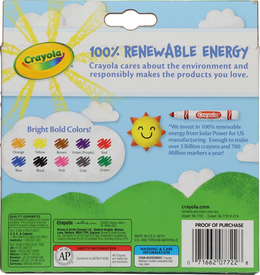 Markers, Classic Colors, Broad Line • Color: Multi • Crayola, Easton, PA, 18044-0431