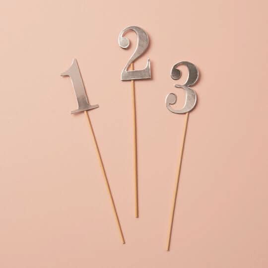 Featuring numbers 1 through 12, they're sure to keep your seating arrangements organized in a fashionable way.. 9" (22.8 cm) tall. 12 numbers. Paper and bamboo Color: Silver