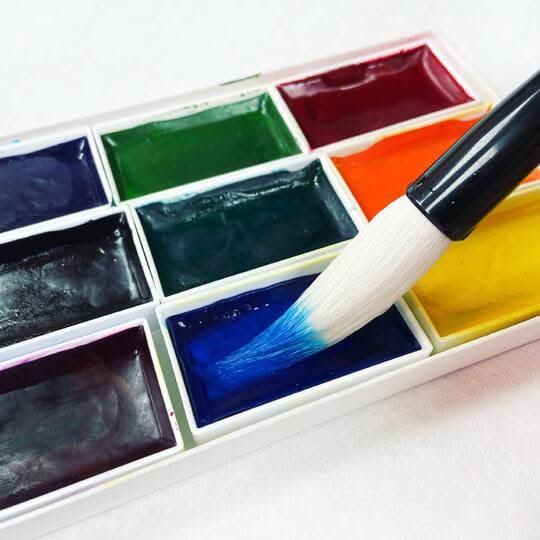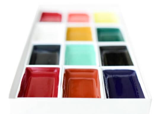 The finest quality watercolors used by Japan’s watercolor and Sumi-e painters can be found in this set of twelve color fast colors in reusable rectangular plastic containers, stored in a decorative paper box. Includes 12 assorted colors. 1" x 1.75" each. 3.5" x 8" overall size. Yaustomo Small Traditional Japanese Watercolor Set • Color: Assorted • Size: 3 1/2x 9/16x8 in
