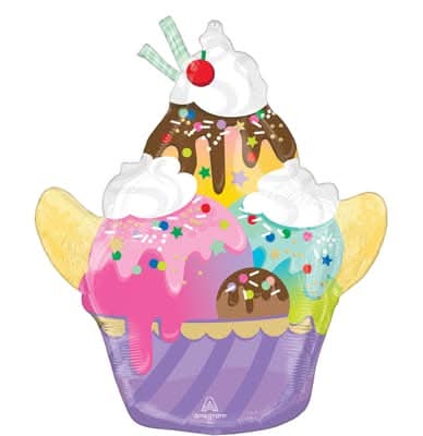 This ice cream-themed foil balloon features colorful details and is guaranteed to bring a smile to anyone's face. Requires helium or air inflation. Metalized polyester film. • Color: Null • Size: 26 in