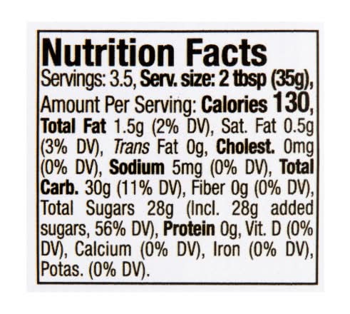 Ingredients: Sugar, Corn Syrup, Water, Palm Oil, Gum Tragacanth (Stabilizer), Natural & Artificial Flavors, Titanium Dioxide, Cellulose Gum (Thickener), Glycerin (Humectant), Modified Corn Starch, Potassium Sorbate (Preservative), Acetic Acid (Preservative)