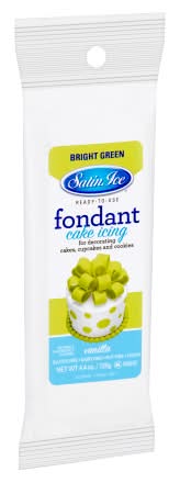 Get the Satin Ice Ready-To-Use Fondant at Michaels. This ready-to-use fondant from Satin Ice is great to embellish cakes, cupcakes and cookies. Available in multiple colors. 4.4 oz. (125 g). Vanilla flavor (Brown is chocolate flavor). Naturally and artificially flavored. Nut, dairy and gluten free. Certified vegan and kosher. Satin Ice Ready-To-Use Fondant, 4.4oz. • Flavor: Vanilla • Color: Bright green