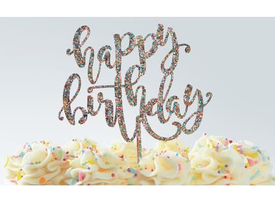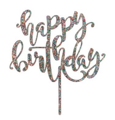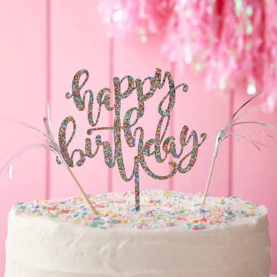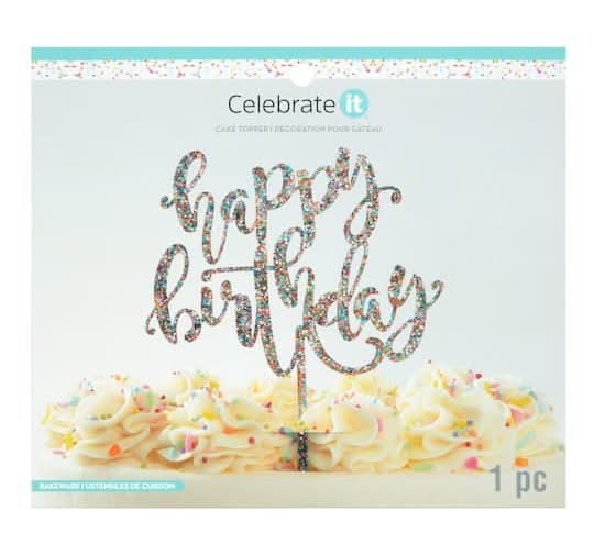 Buy the Multicolor Glitter Happy Birthday Cake Topper by Celebrate It at Michaels. Add style to your celebration with this festive cake topper featuring the words Happy Birthday in glittery letters.Multicolor .(12.14cm x 13.335cm). Food safe. Paper and plastic • Color: Assorted • Size: 12.14cm x 13.335cm