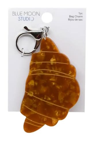 Find this Blue Moon Studio Layered Croissant Bag Charm at Michaels. Add a personal touch to your handbags and totes with this cute bag charm. The delicious croissant has a gold toned clasp, perfect to attach to purses, backpacks, crossbody bags and more. Croissant shape. 5" x 2" x 0.39" (112.7cm x 5.08cm x 1cm). Zinc and acetate. Blue Moon Studio Layered Croissant Bag Charm