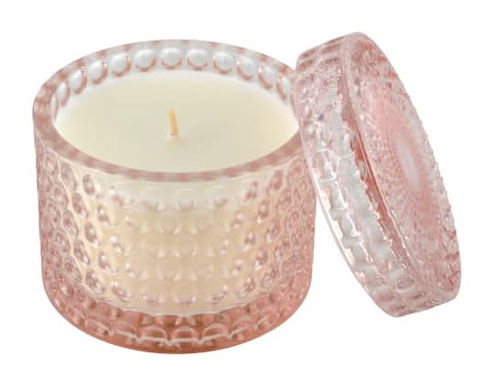 Buy this 5.6oz. Bubble Glass Scented Candle by Ashland at Michaels. The unique glass jar features a bubbled texture with a lid so you can cover your candle when it's not in use. Available in multiple scents. 5.6 oz. (158 g). Glass, wax blend and fragrance Color: Sweet cherry blossom