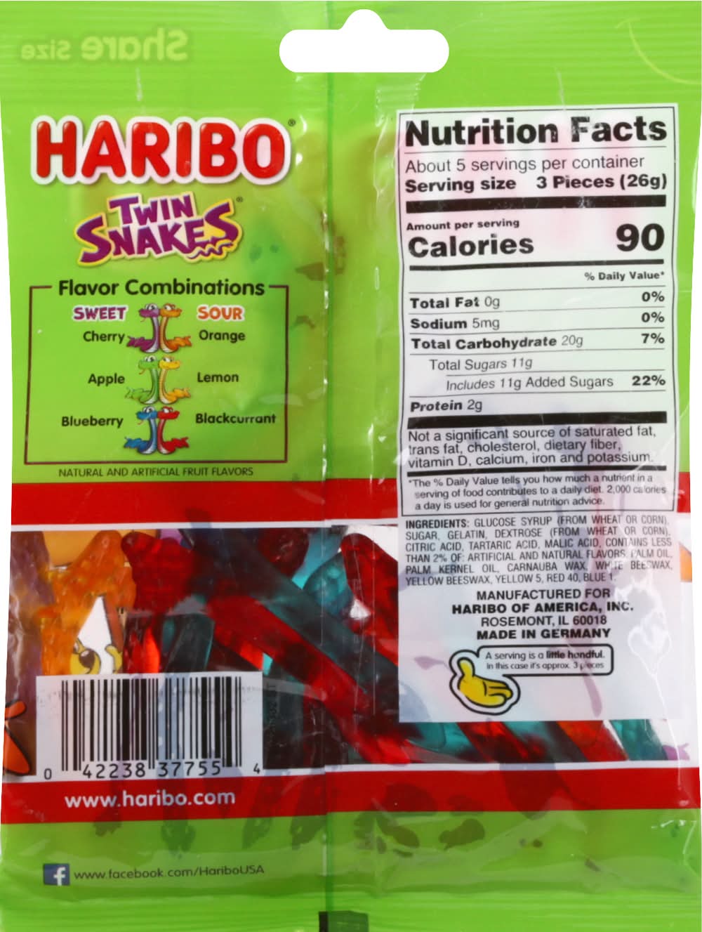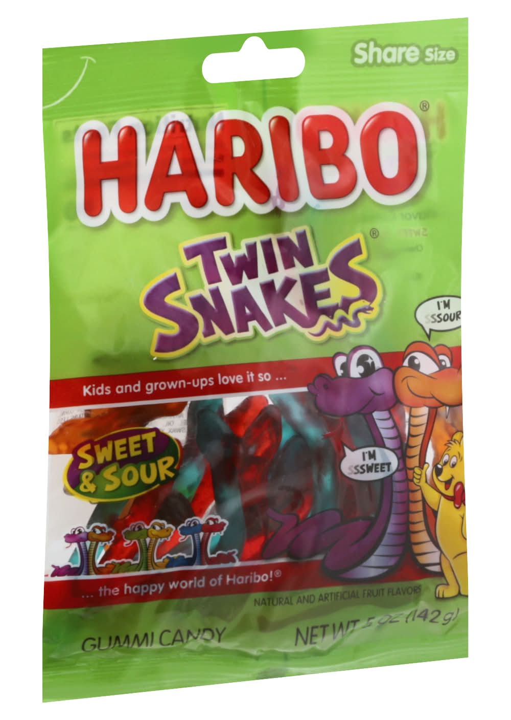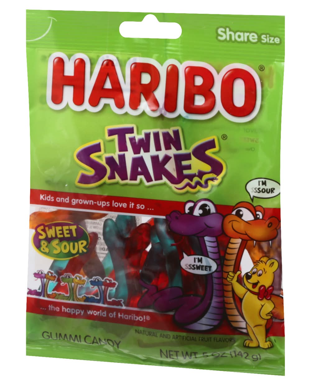 Haribo Twin Snakes Share Size Sweet & Sour Gummy Candy, Fruit (5 oz)