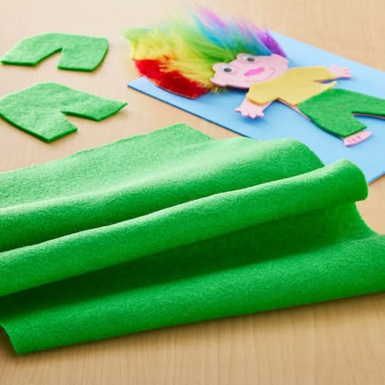 Create more fun with felt. This basic felt sheet is just waiting to be cut and decorated, guided by your child's imagination. Kids can use this felt sheet to craft interesting shapes, make fun toys, dress up their own accessories and much more! Polyester . For ages 3 and up • Color: Apple green • Size: 9" X 12"