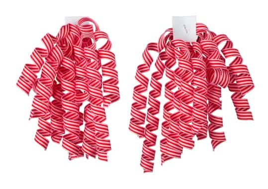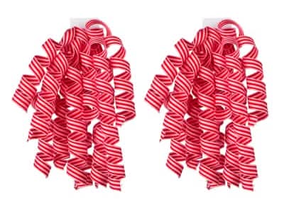 3/8" Red & Pink Stripes Curly Ribbon Bows, 2Ct. By Celebrate It