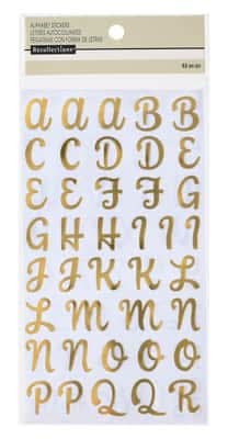 Get the Gold Foil Alphabet Stickers by Recollections at Michaels. Add visual flair to your invites, scrapbook pages and journals with these foil stickers by Recollections.. 3/4" (1.91 cm) letter size. 3.75" x 6.875" (9.53cm x 17.46cm) sheet size. 83 stickers. • Color: Gold foil • Size: 3/4 Inch