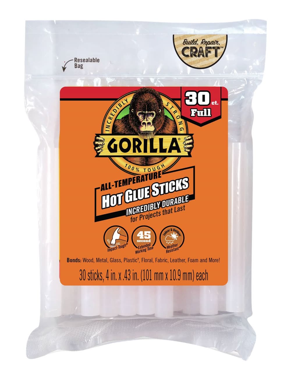 Gorilla Hot Glue Sticks are designed for both high and low temperature glue guns, making them a versatile choice for various DIY projects and repairs. These sticks offer a clear, strong adhesive that provides a long-term hold, even on surfaces that are typically difficult to bond. They are noted for their durability and toughness, which helps maintain the integrity of projects against seasonal temperature swings. Additionally, the glue's extended working time allows for added convenience during application. Weather-resistant properties further enhance the performance of these glue sticks in different environmental conditions.