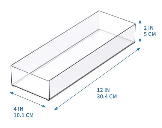 Store your writing utensils, stickers, stamps and other creative tools or materials in this clear storage tray. The tray is slim and sleek with a stackable design so you can easily organize your desktop or craft table supplies with room to add other stackable trays on top. • Color: Clear • Size: 12x4 in