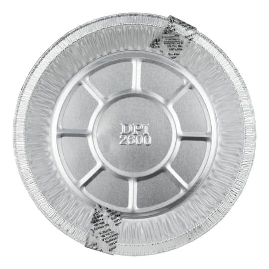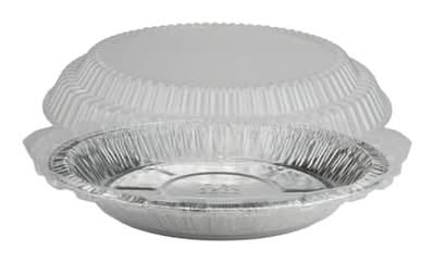 Purchase the Silver Lining by Durable Packaging Foil Pie Pans with Dome Lids, 2ct. at Michaels. This set of two aluminum pie pans are complimented by clear dome lids, ensuring prolonged preservation of your freshly baked goods and make it easy to transport your pies. Whether you're baking or need storage for baked goods, these pie pans are versatile and ready to use! Silver colored pan, clear lids . 1.19" x 9.63" x 9.63" (3cm x 24.5cm x 24.5cm) . Set of 2 pie pans with lids . Pan is oven and grill safe to 500­°F . Freezer safe