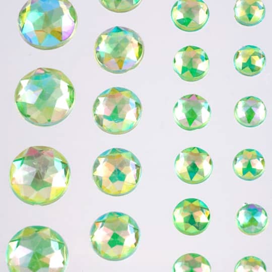 Buy the Adhesive Backed Iridescent Rhinestones by Recollections at Michaels. Use these adhesive backed rhinestones to add bling to your projects. Available in multiple colors. Includes 4mm, 6mm, 8mm and 10mm diameter . 42 stickers. Adhesive backing Color: Light green