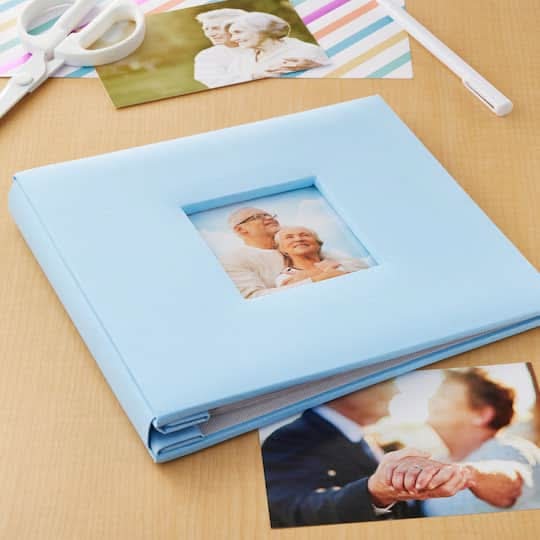 This classic cloth scrapbook is perfect for any occasion—just add your own creative touches and embellishments to make it your own. Featuring a photo opening to display your favorite picture on the cover, you can celebrate cherished moments, memorable events and more. You can even add additional acid-, lignin- and PVC-free page inserts as needed. Available in multiple colors. (20.3cm x 20.3cm). 10 top loading pages (20 layouts, black). Post-bound. Acid, lignin and PVC free . • Color: Light blue • Size: 8x8 in