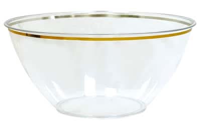 Buy this Serve up good times and tasty treats with this plastic bowl. The clear bowl has a simple yet classic design with a Available in multiple sizes. Wash before use. Hand wash only. Do not microwave Color: Gold
